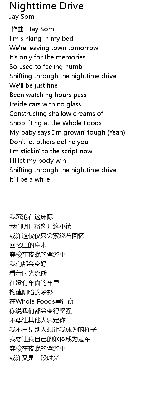 | [00:42.984] | 穿梭在夜晚的驾游中 |