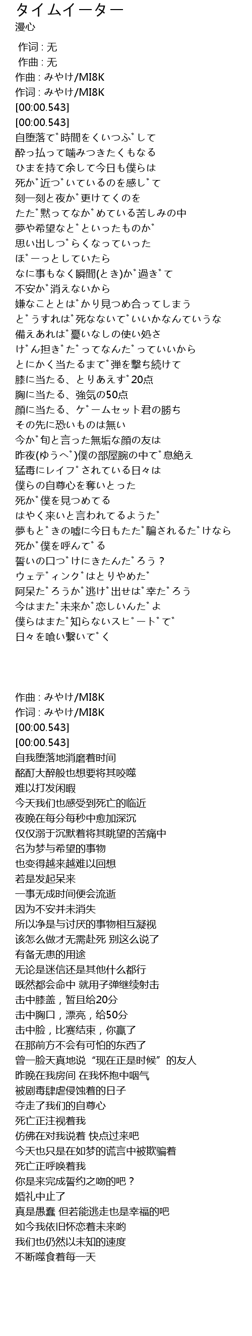 | [00:00.181] | 作词 : みやけ/MI8K |