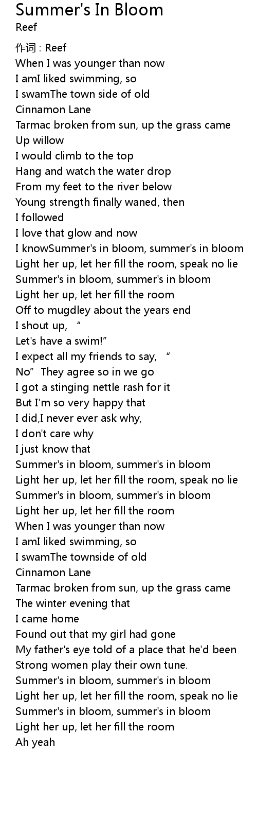 | I knowSummer' s in bloom, summer' s in bloom | |