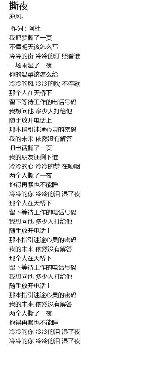 | [03:02.138] | 冷冷的你 冷冷的泪 湿了夜 |