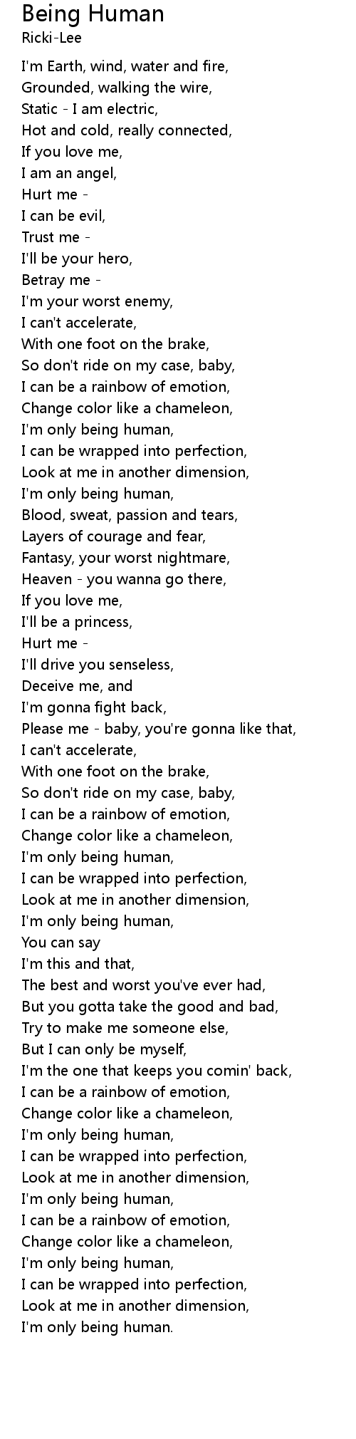 | I'm only being human, | |