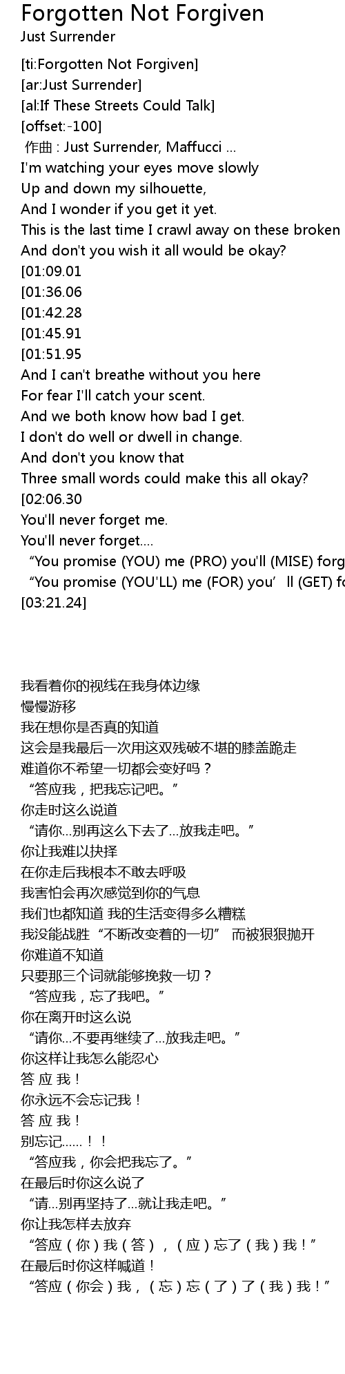 | [03:07.52] | " You promise YOU' LL me FOR you' ll GET forget ME me." |
