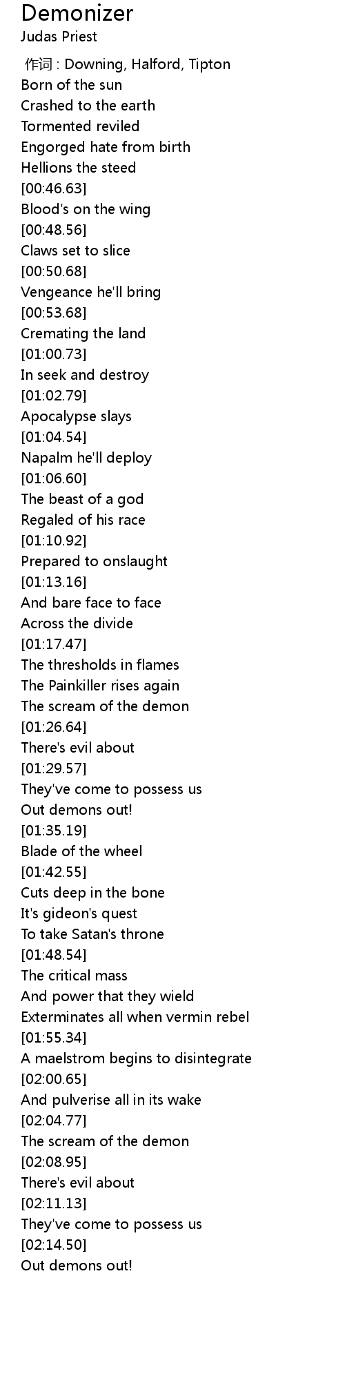 | [00:00.00] | 作词 : Downing, Halford, Tipton |