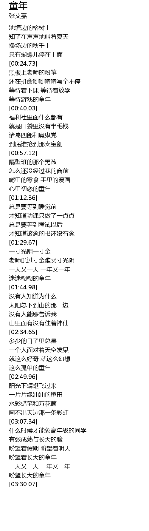 | [03:26.96] | 盼望长大的童年 |