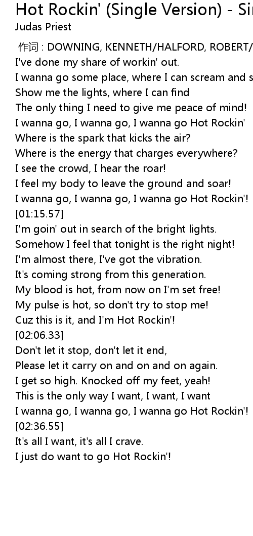 | [01:02.81] | I wanna go, I wanna go, I wanna go Hot Rockin'! |