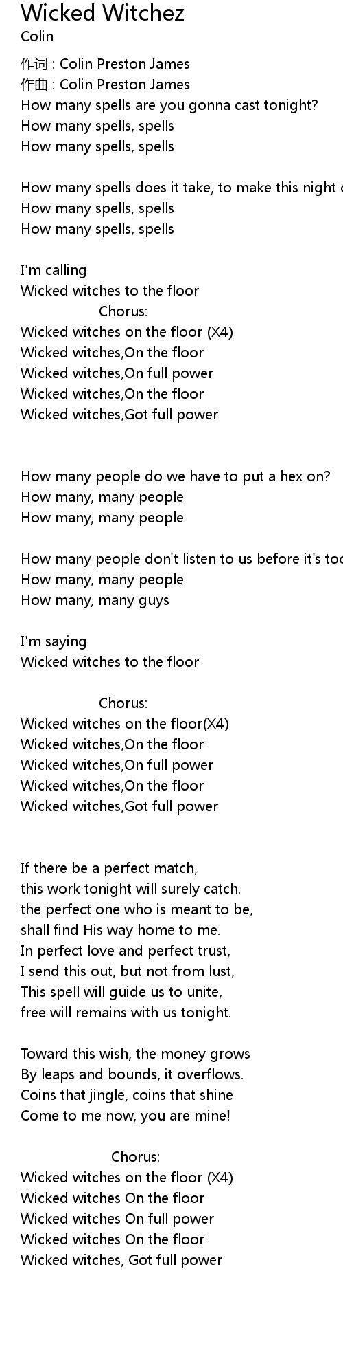 | 歌曲 | Wicked Witchez |