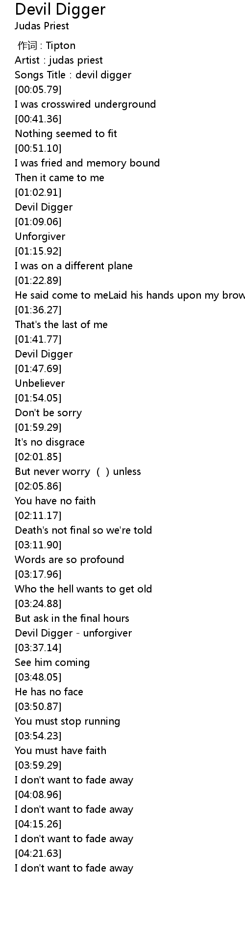 | [03:31.58] | Devil Digger - unforgiver |