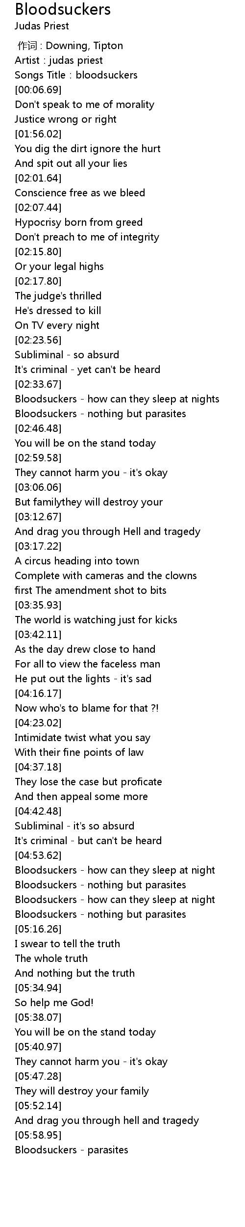 | [04:59.88] | Bloodsuckers - nothing but parasites |