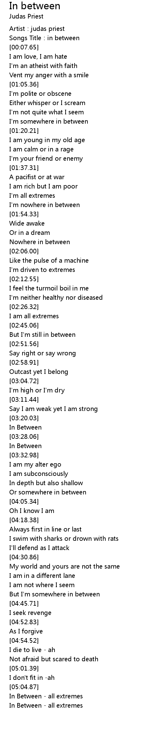 | [05:23.31] | In Between all extremes |