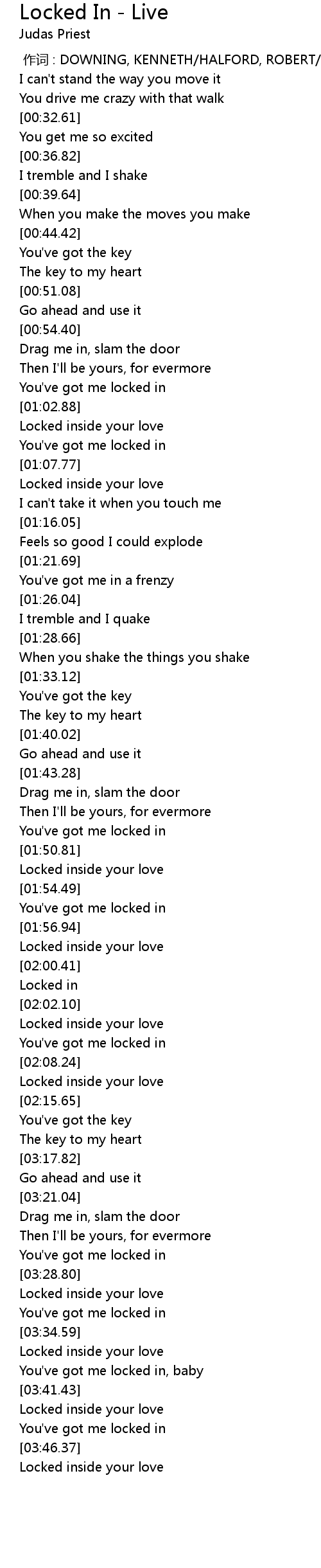 | [03:38.72] | You' ve got me locked in, baby |