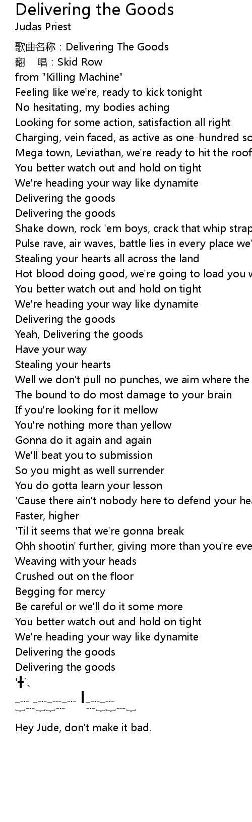 | 歌曲名称:Delivering The Goods | |