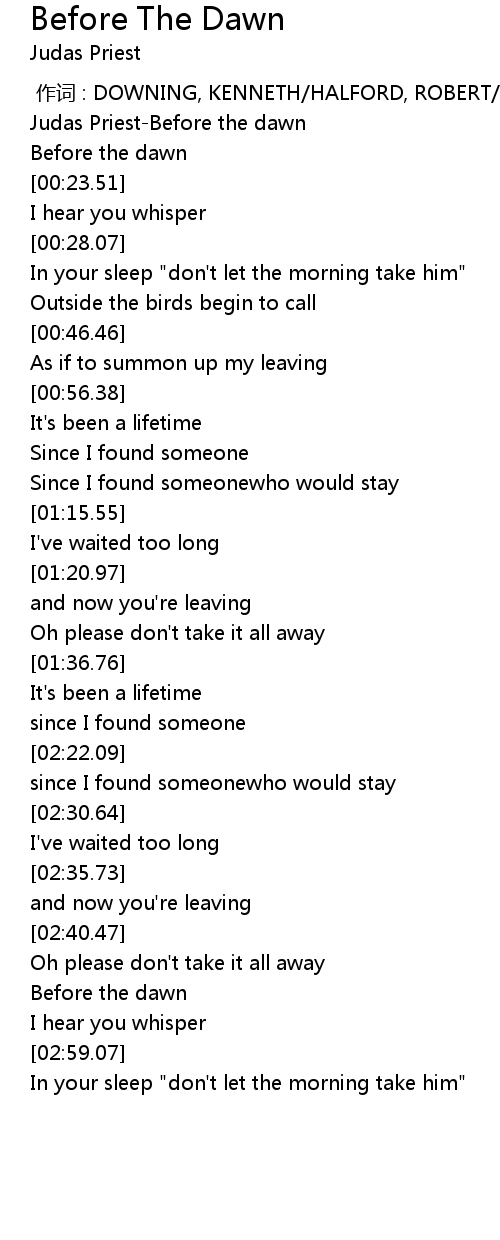 | [02:59.94] | In your sleep " don' t let the morning take him" |