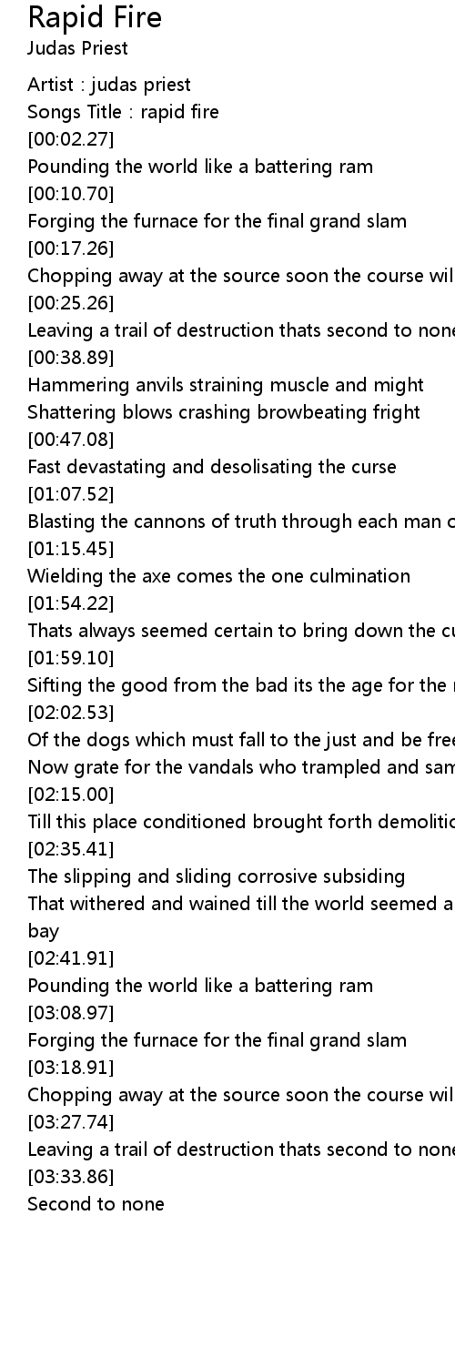 | [03:31.68] | Leaving a trail of destruction thats second to none |