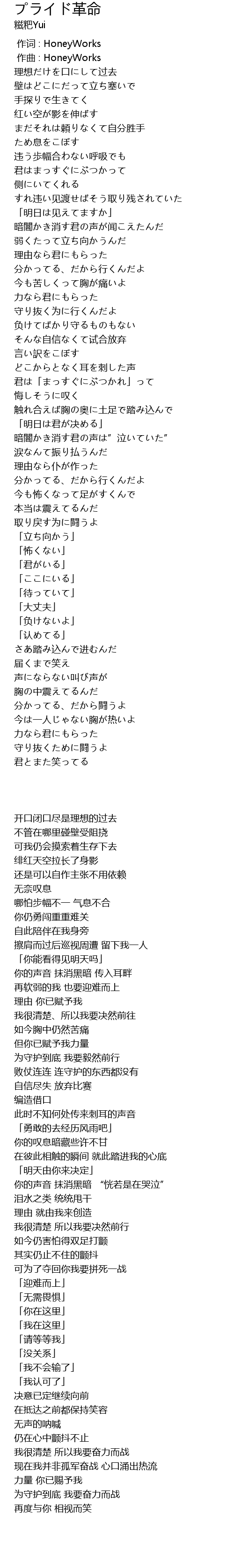 | 歌曲 | プライド革命 |