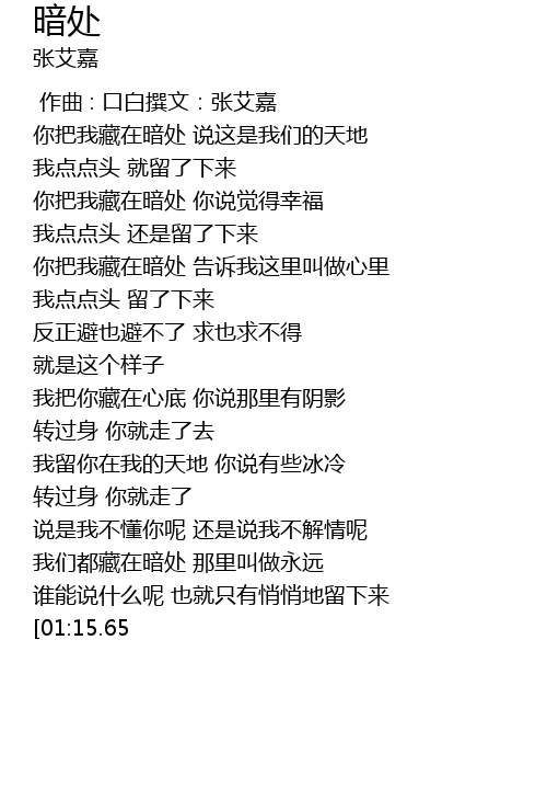 | [00:13.52] | 你把我藏在暗处 你说觉得幸福 |