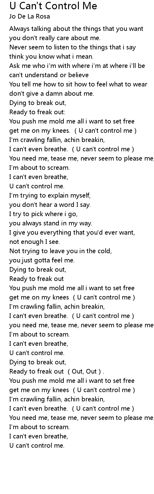 | [00:44.43] | I can' t even breathe. U can' t control me |