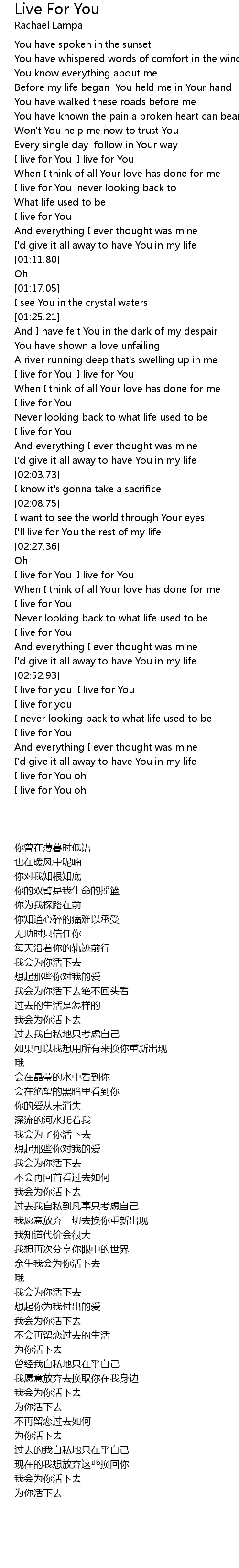 I live for You never looking back to |