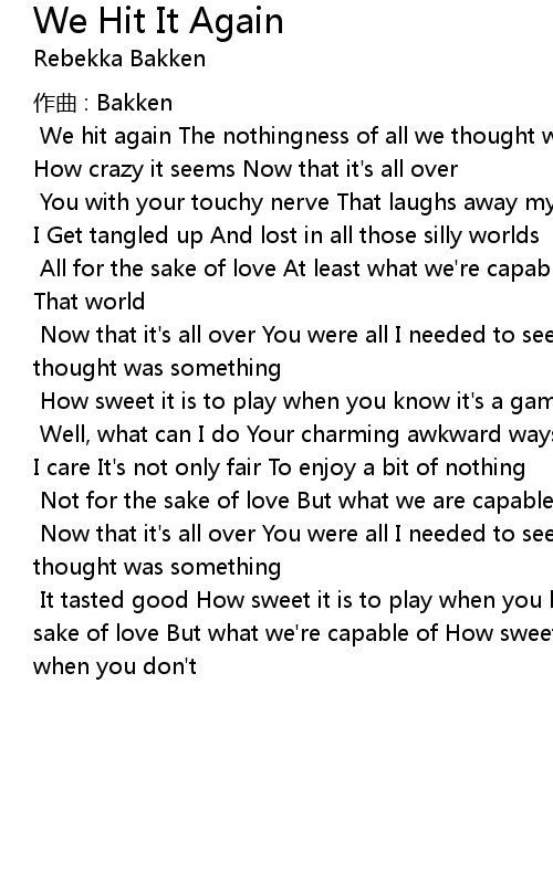 | 歌曲 | We Hit It Again |