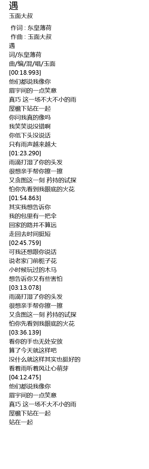 | [00:18.492] | 曲/编/混/唱/玉面 |
