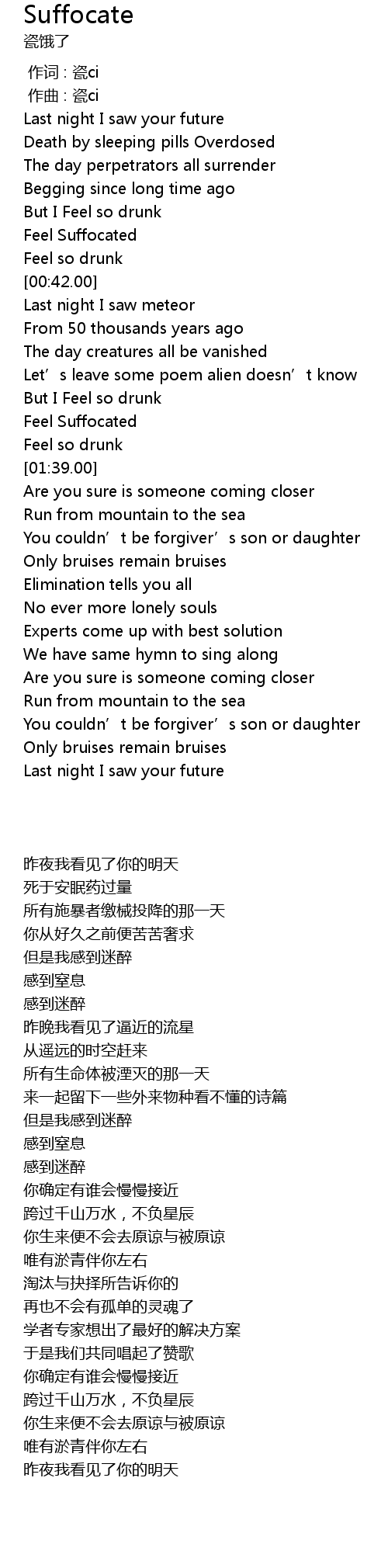 | [00:34.00] | Feel Suffocated |