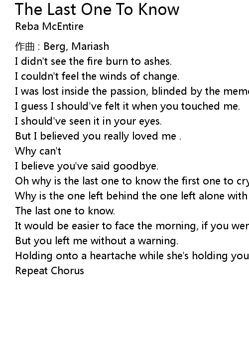 | Oh why is the last one to know the first one to cry and the last to let go. | |