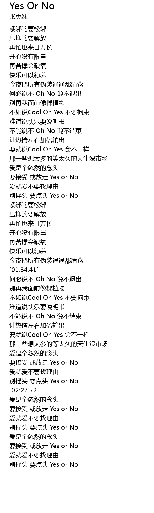 | [02:22.11] | 别摇头 要点头 Yes or No |
