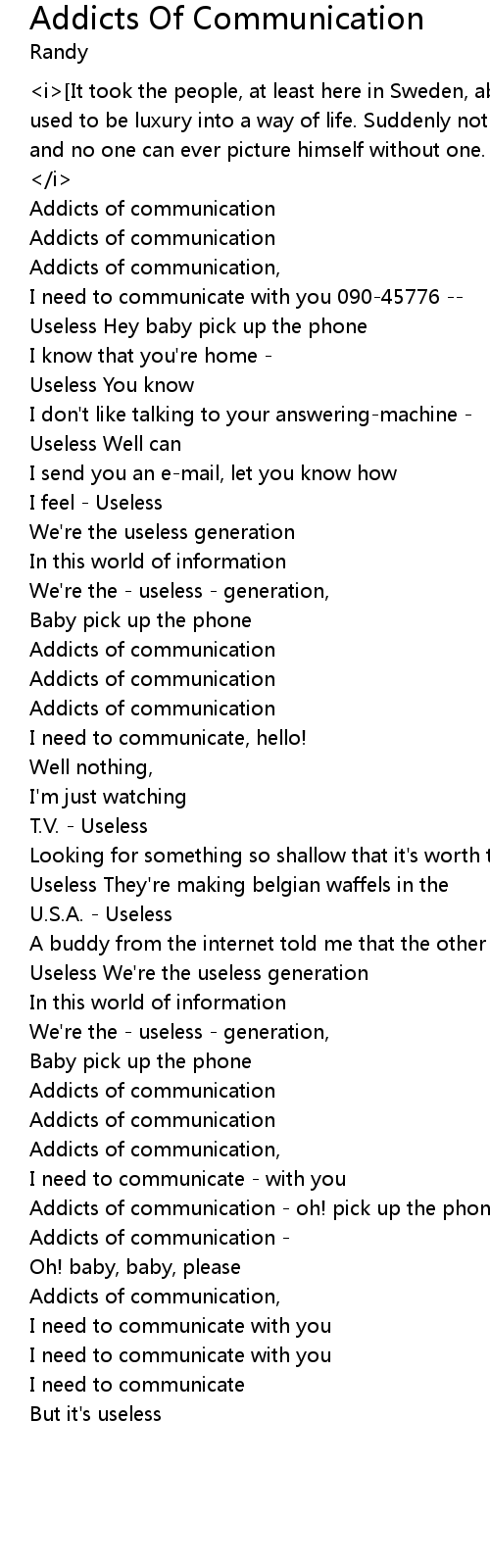<i>[It took the people, at least here in Sweden, about two years to turn what used to be luxury into a way of life. Suddenly nothing will be the same again and no one can ever picture himself without one. Well baby, pick up the phone. ]</i> |