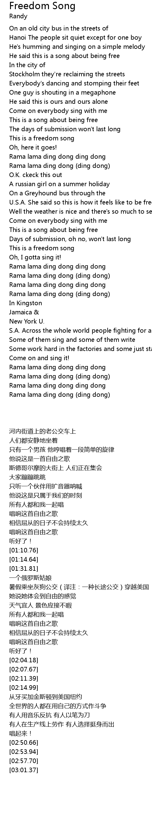 [01:51.23] 唱响这首自由之歌