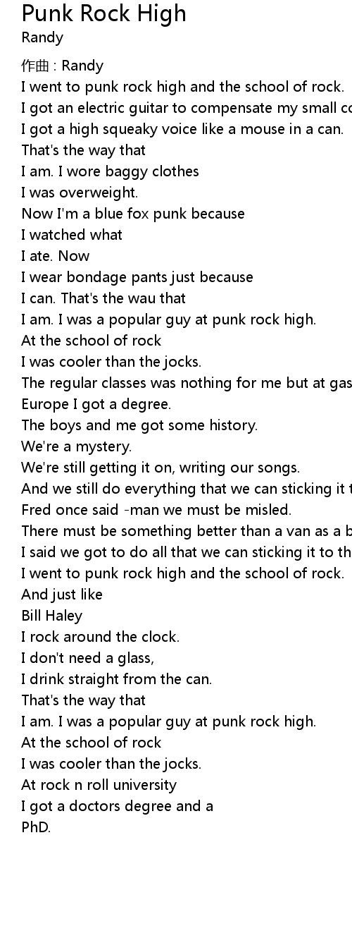 | I went to punk rock high and the school of rock. | |