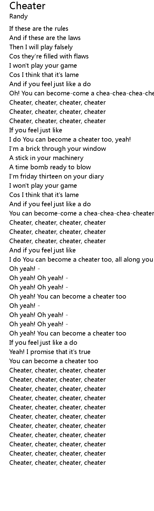 I do You can become a cheater too, all along you cheater sing |