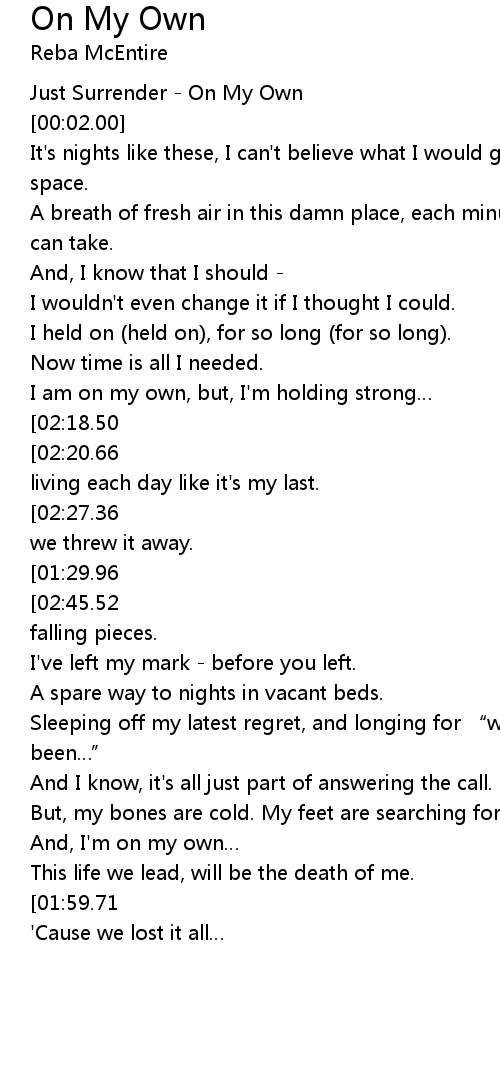 | [00:29.07] | I am on my own, but, I'm holding strong… |
