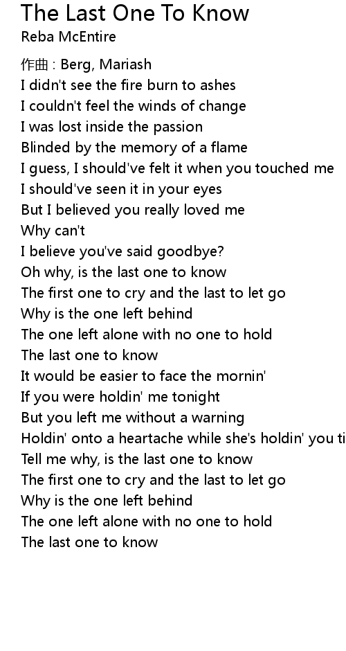 | 歌曲 | The Last One To Know |
