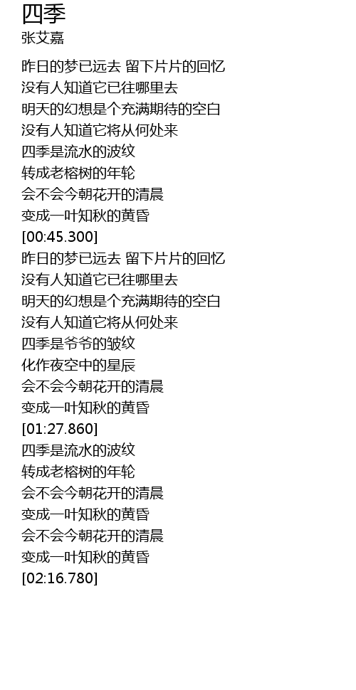 | [01:48.100] | 四季是流水的波纹 |