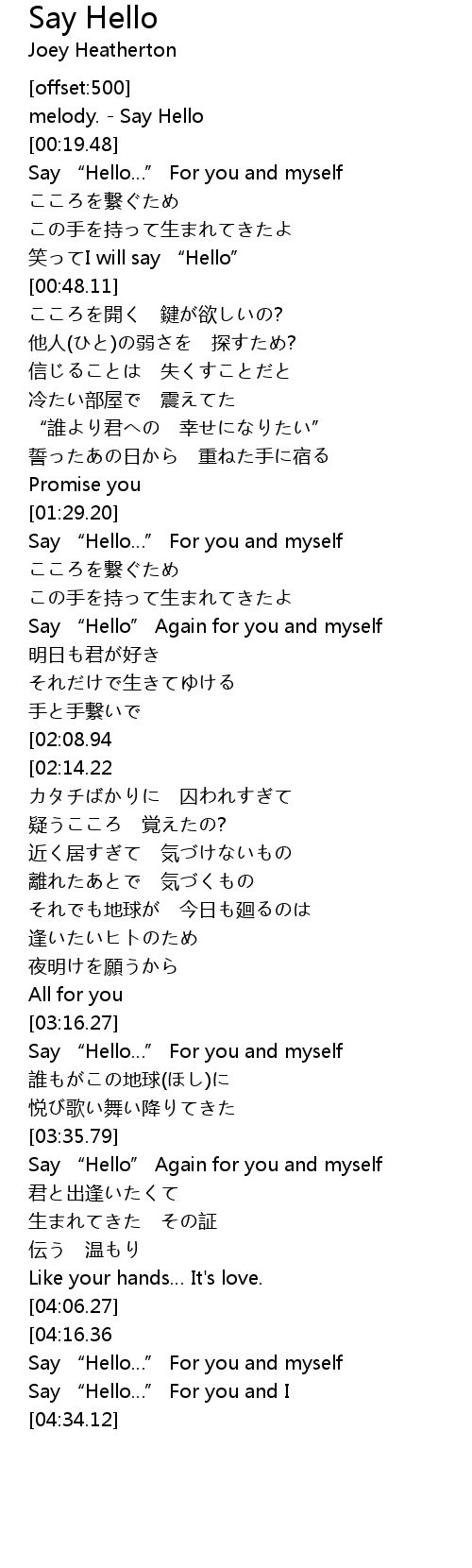 | [03:36.59] | Say " Hello" Again for you and myself |