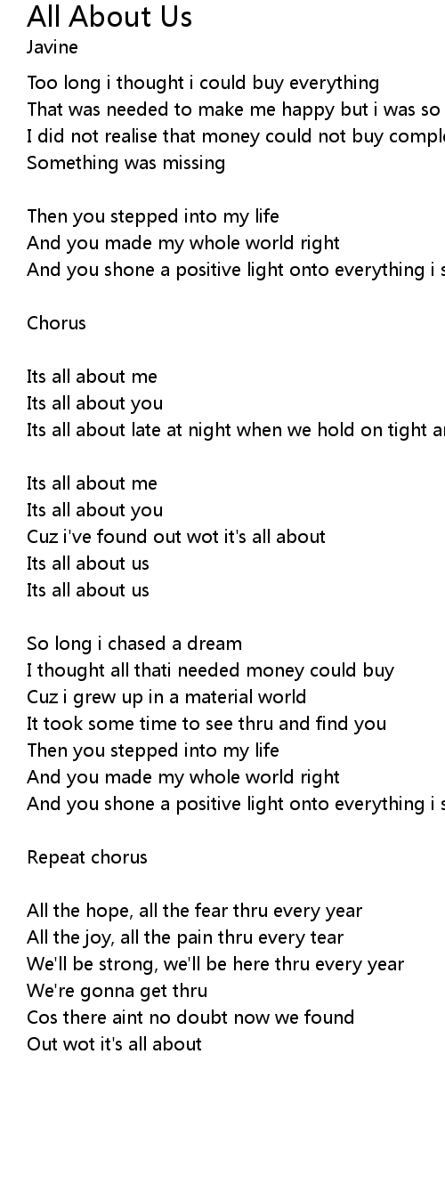 | Its all about late at night when we hold on tight and wot were gonna do | |