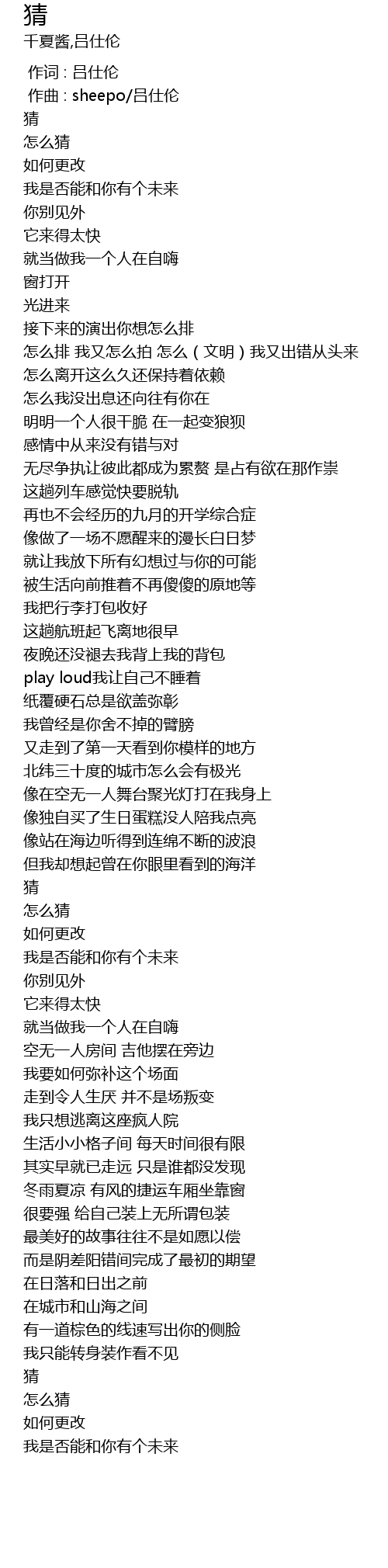| [00:01.000] | 作曲 : sheepo/吕仕伦 |
