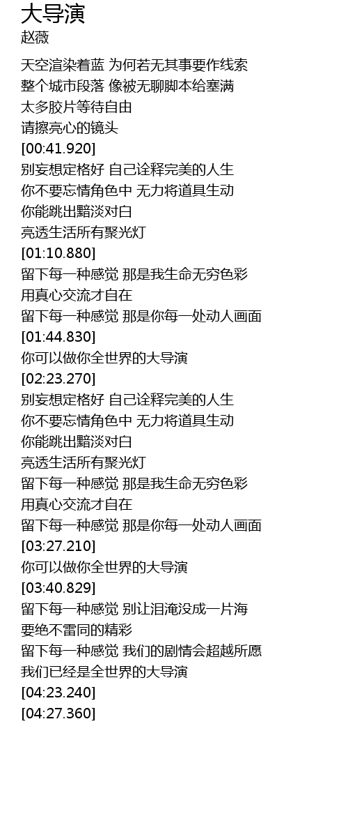 | [04:15.100] | 我们已经是全世界的大导演 |