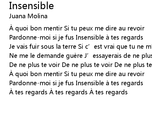 | Pardonnemoi si je fus Insensible a tes regards | |