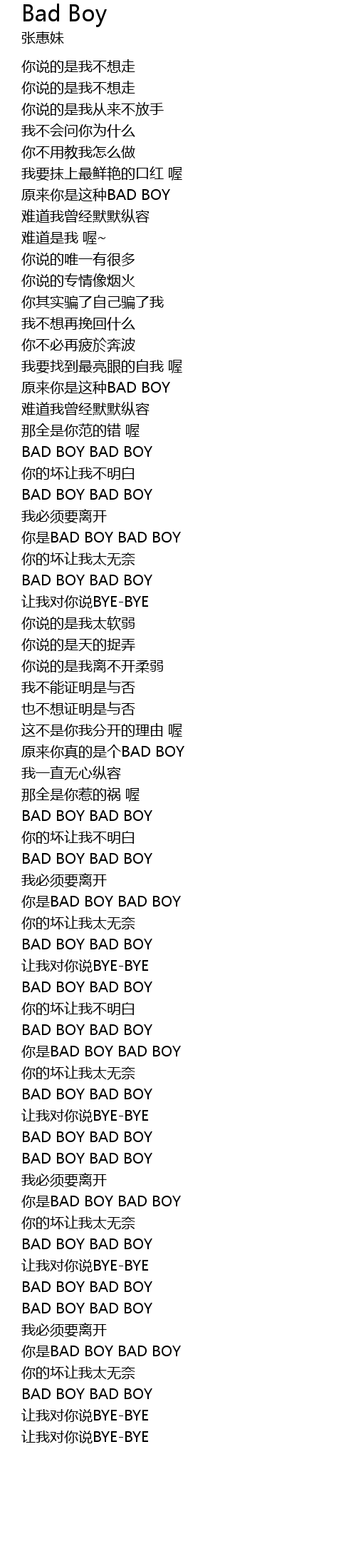 | [02:20.320] | 你是BAD BOY BAD BOY |