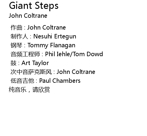 | [00:05.000] | 次中音萨克斯风 : John Coltrane |