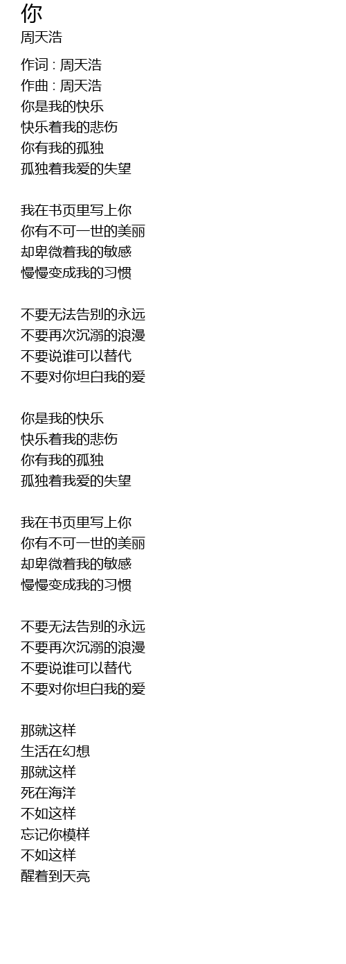 | 作词 : 周天浩 | |