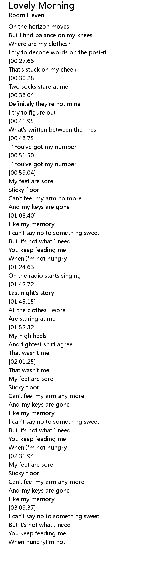 | [00:52.18] | "You've got my number" |