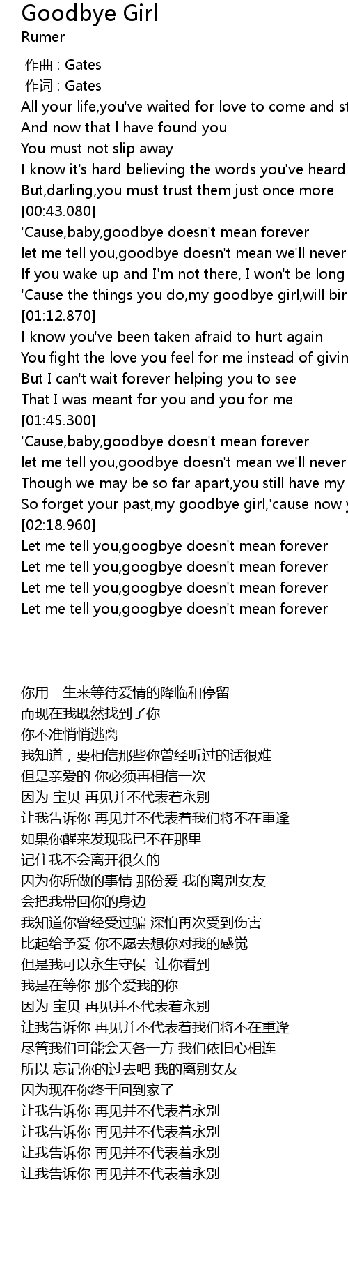 | [02:43.410] | Let me tell you, googbye doesn' t mean forever |
