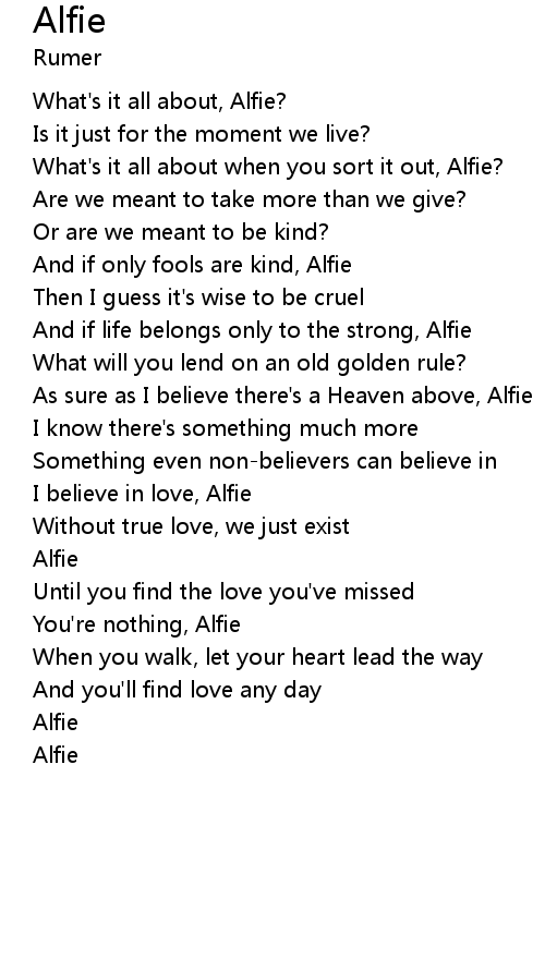 What's it all about when you sort it out, Alfie? |
