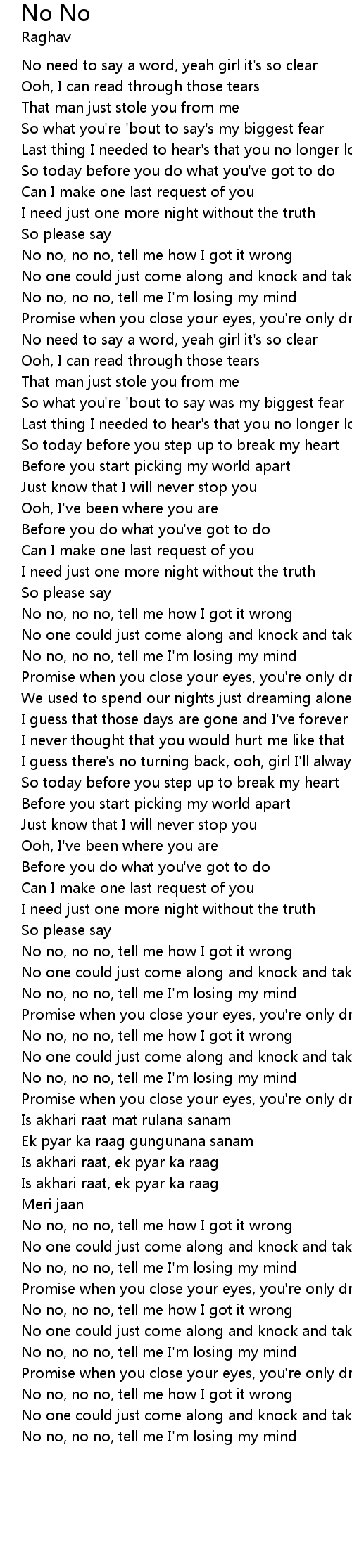 No no, no no, tell me I'm losing my mind |