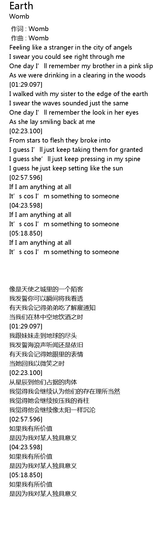 | [01:34.097] | I walked with my sister to the edge of the earth |