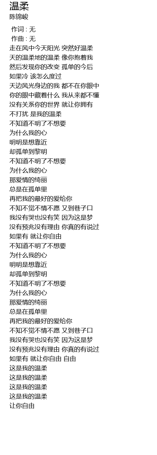 | [00:12.868] | 走在风中今天阳光 突然好温柔 |