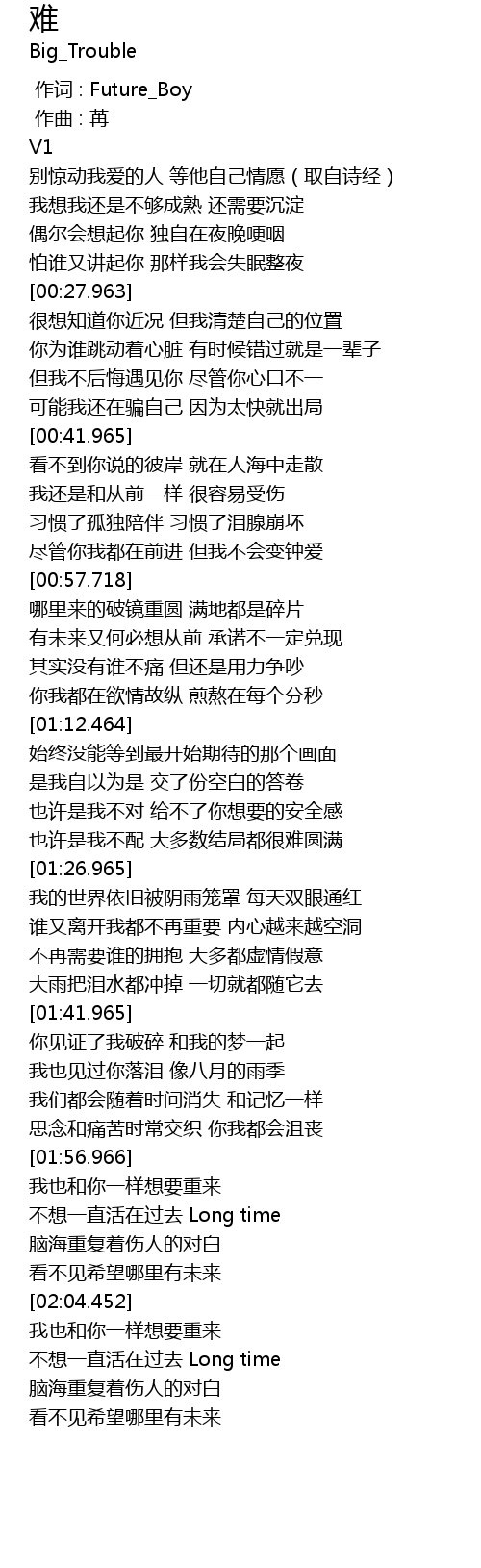 | [01:01.969] | 有未来又何必想从前 承诺不一定兑现 |