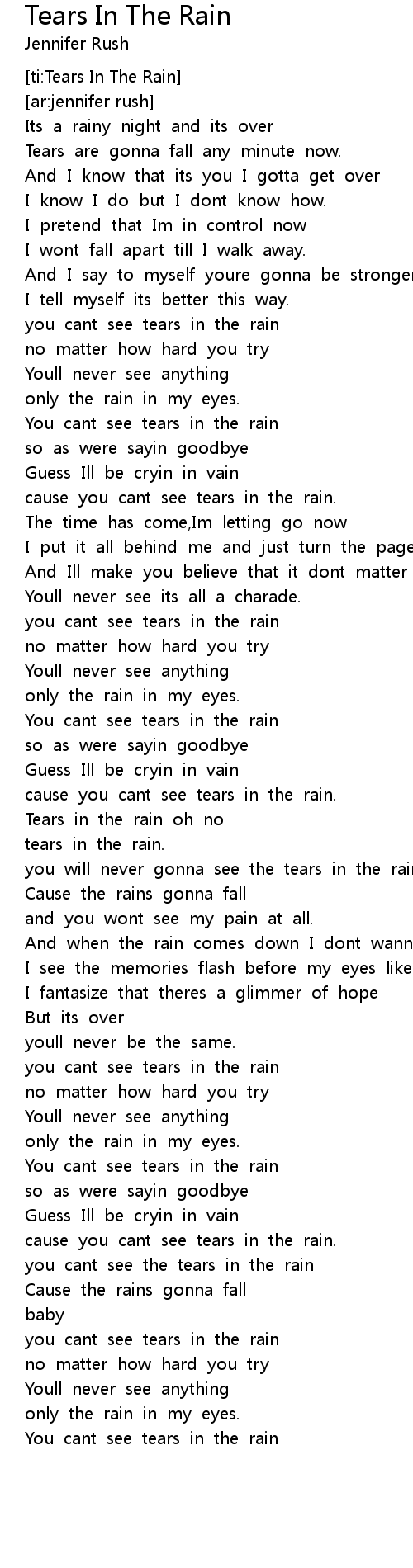 Tears in the rain oh no |