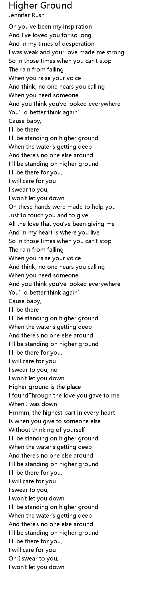 | I ll be standing on higher ground | |
